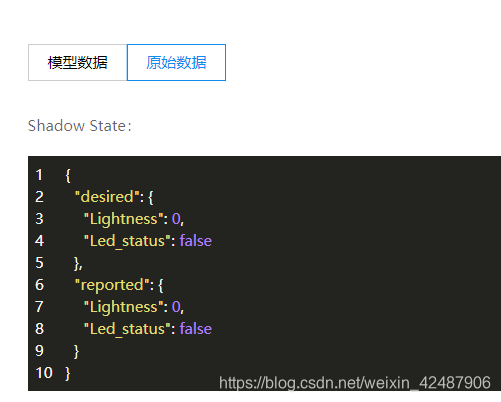 mqtt传输的消息格式采用json格式,在发送的过程中,我们不需要自己写这种格式,只需要查看物影子的模型数据,编辑,给这个物影子的属性一个初始值。然后打开原始数据,就可以找到发送数据的数据格式。