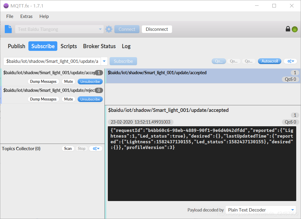 - $baidu/iot/shadow/Smart_light_001/update/accepted