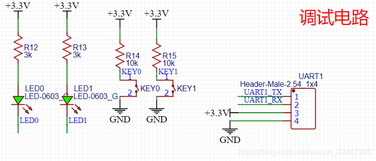 - 调试:SWD烧写接口,复位按键,晶振,调试串口,LED2,按键2
